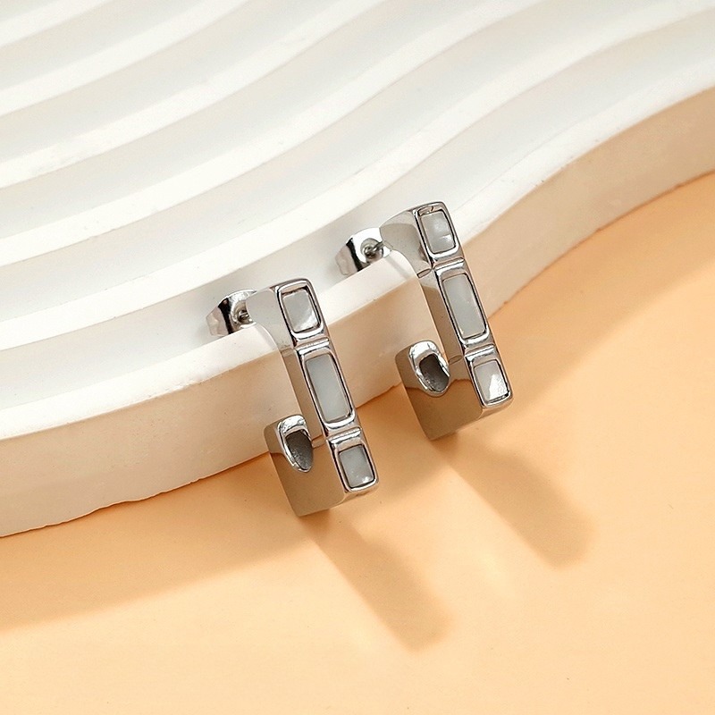 Aretes plateados diseño J con nácar blanco