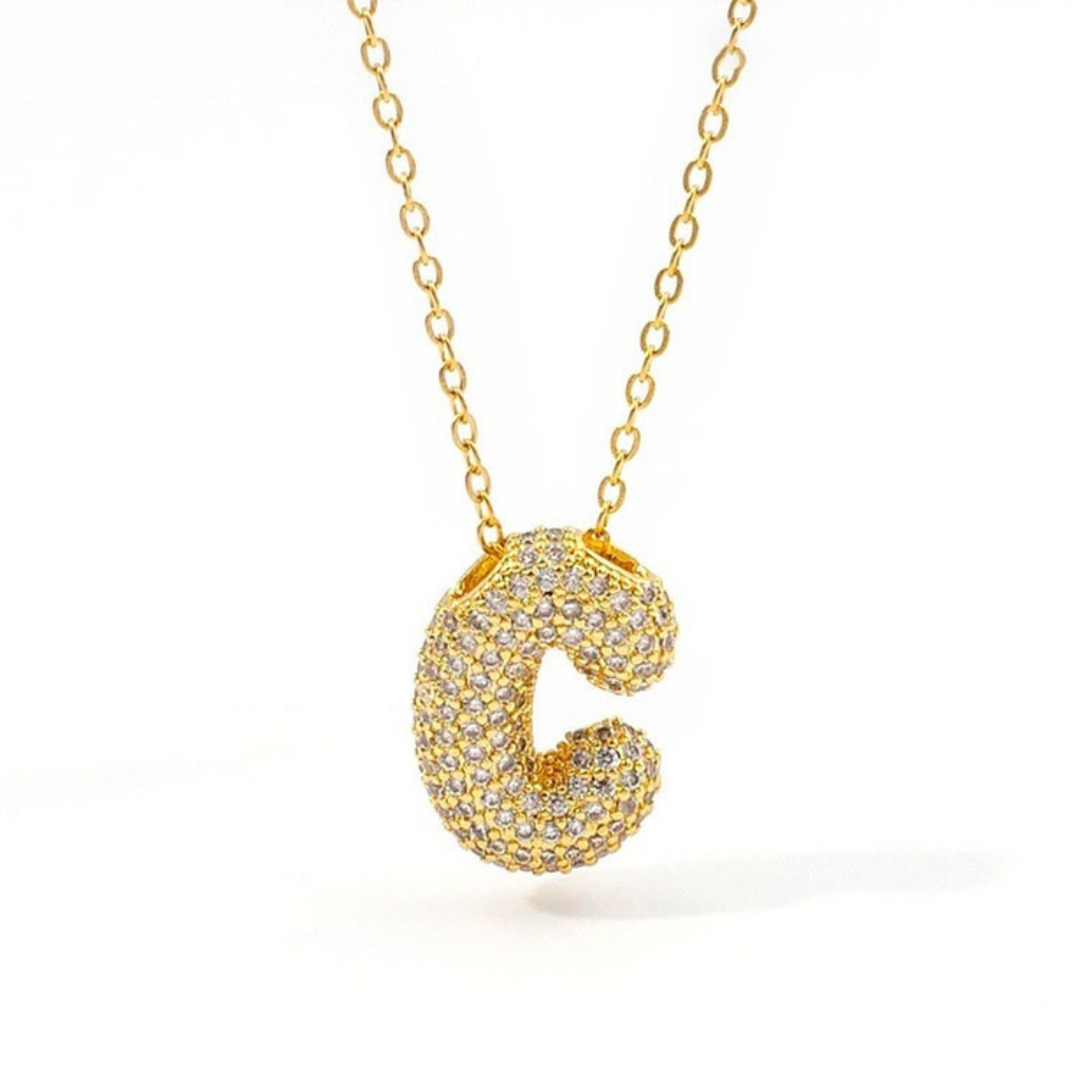 Cadena dorada dije C pedrería incrustada 2.3cm cantidad