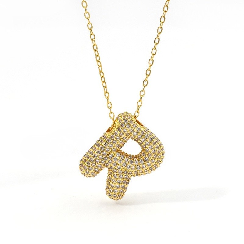 Cadena dorada dije R pedrería incrustada 2.3cm cantidad