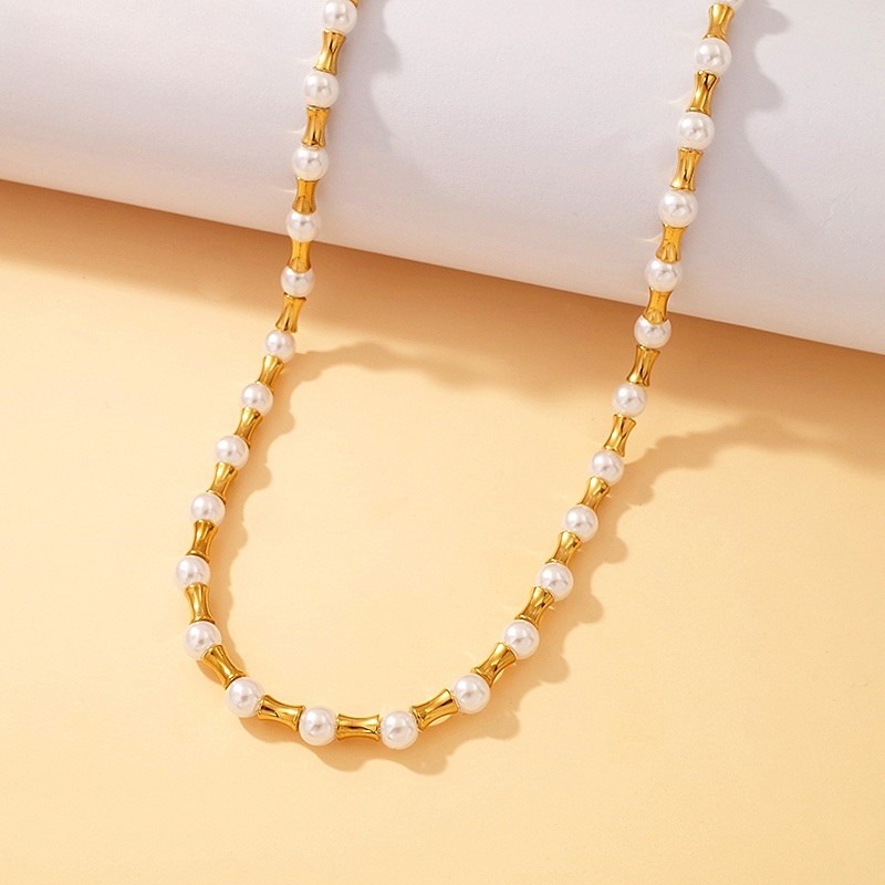 Collar dorado 48cm perlitas 6mm