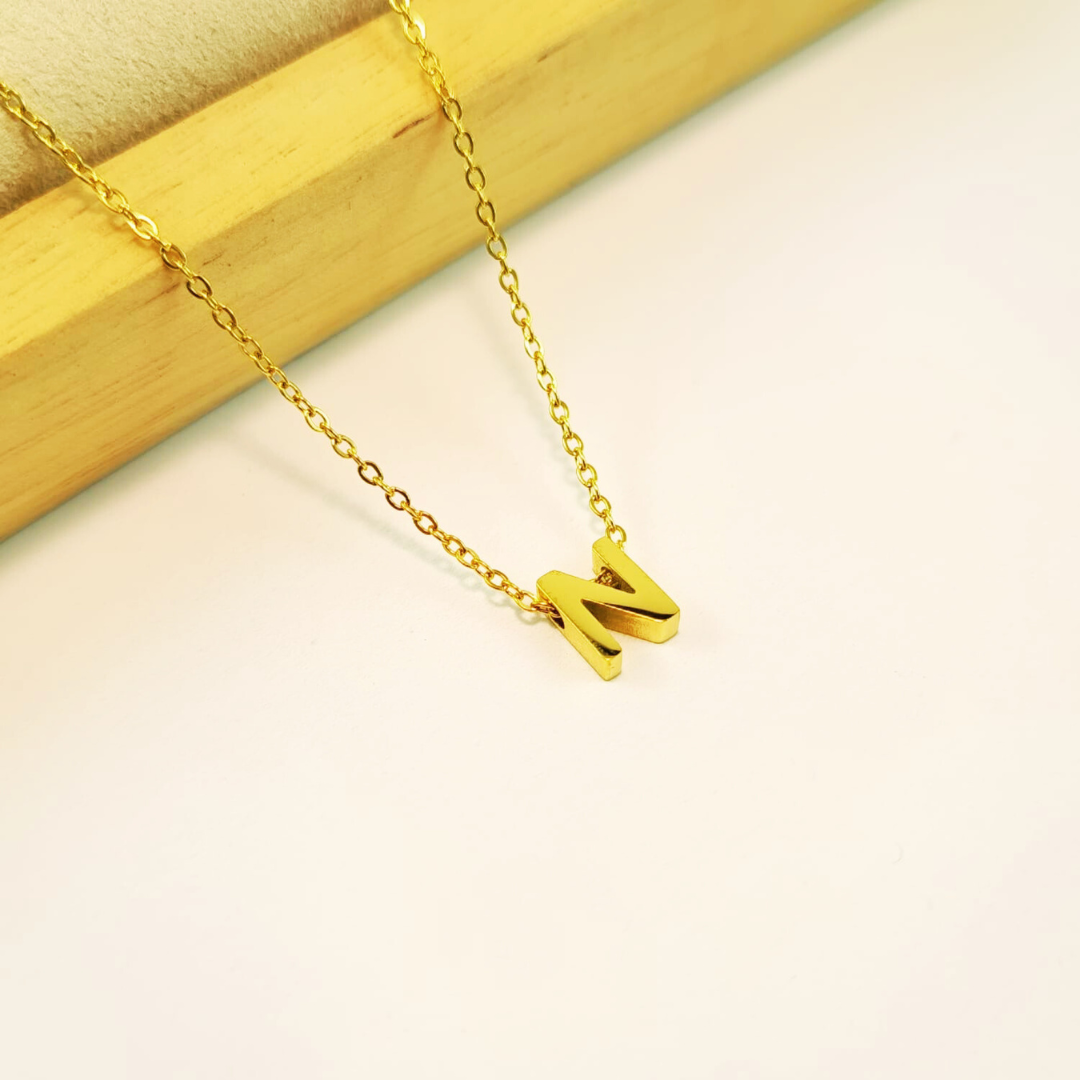 Collar dorado dije inicial N 8mm