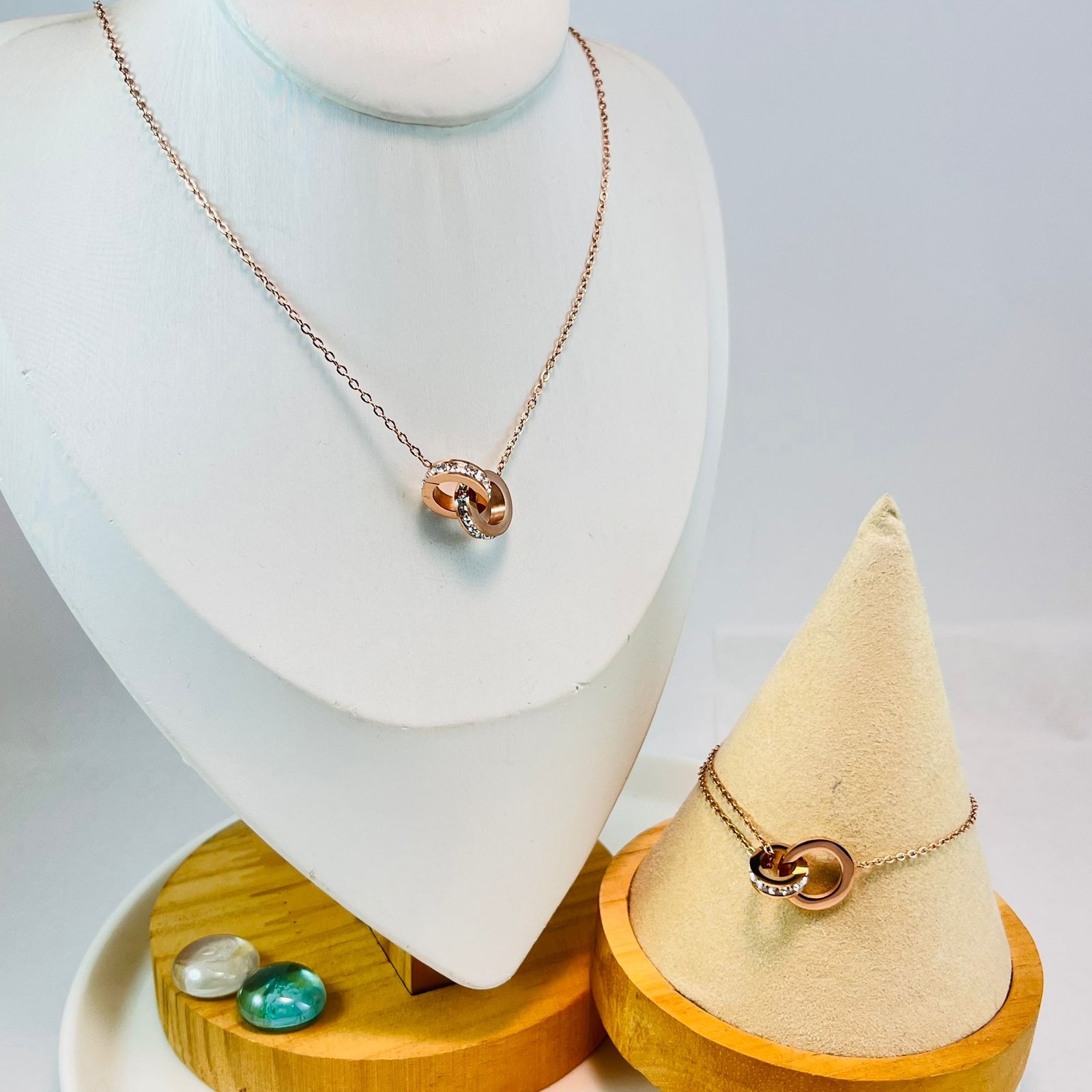 Collar Rose Gold 48cm Doble Roll pedrería cantidad