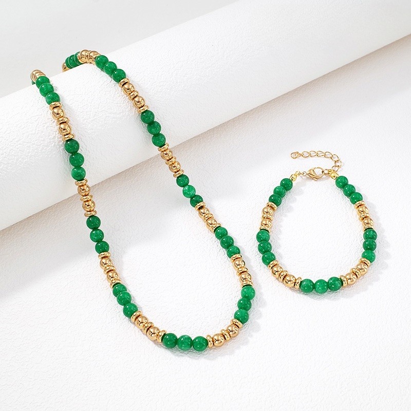Set Collar y pulsera piedras verdes y cuentas doradas
