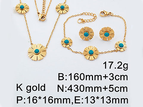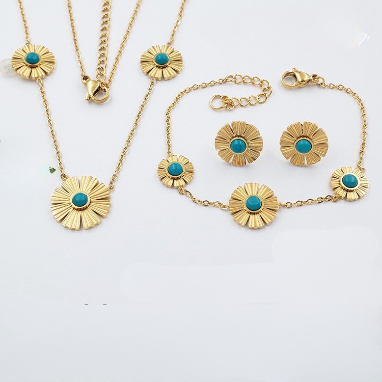 Set dorado 3 piezas flor centro turquesa