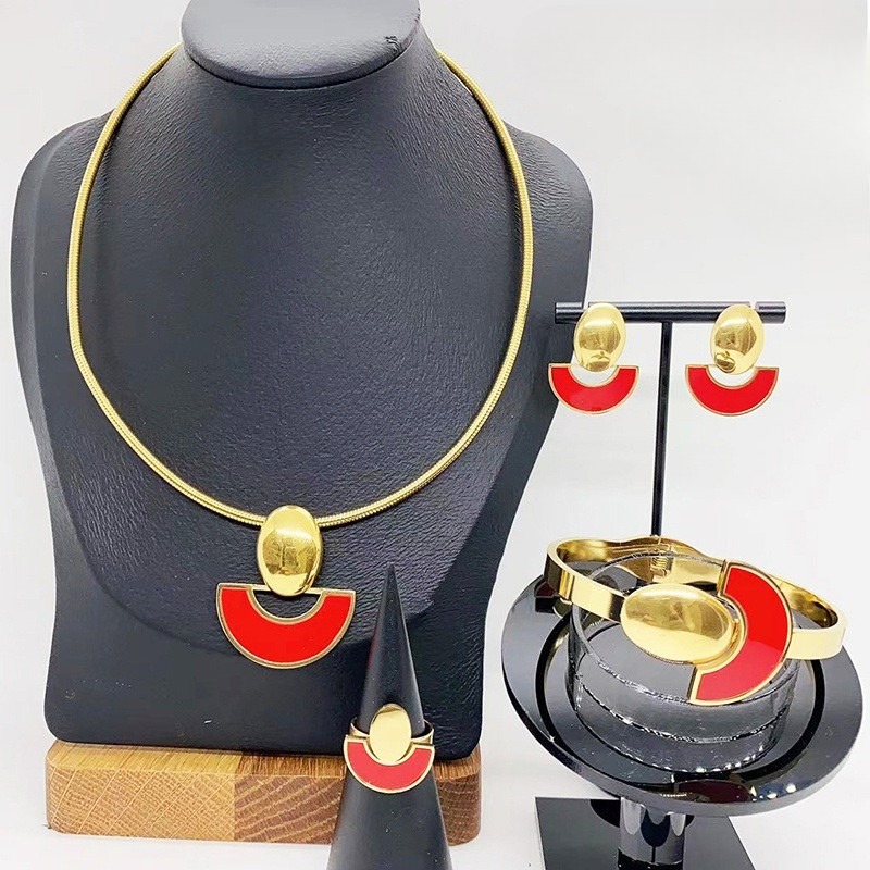 Set dorado 4 Accesorios rojos anillo #7 cantidad