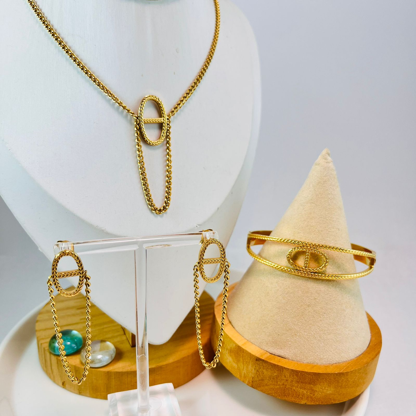 Set dorado Collar dije y argollas c/pedrería