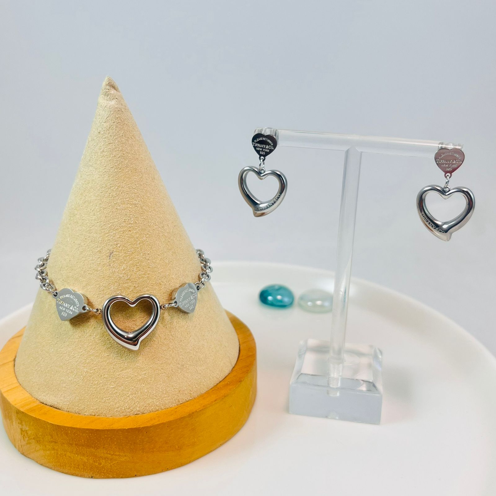 Set Aretes y pulsera corazón "Tffany" cantidad
