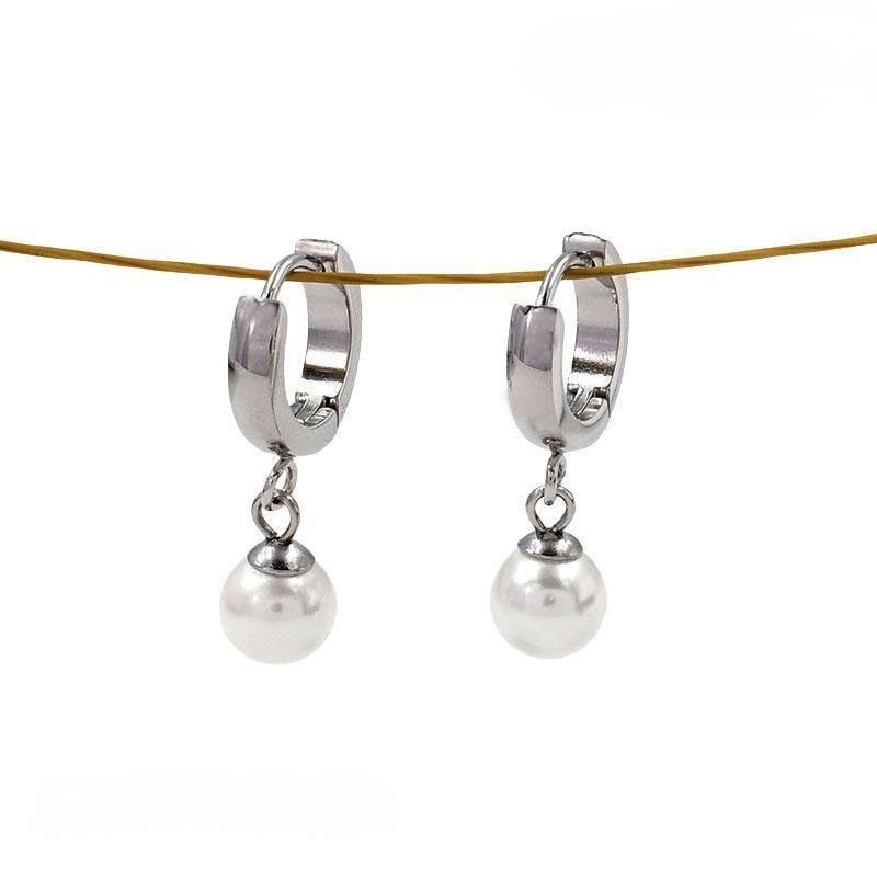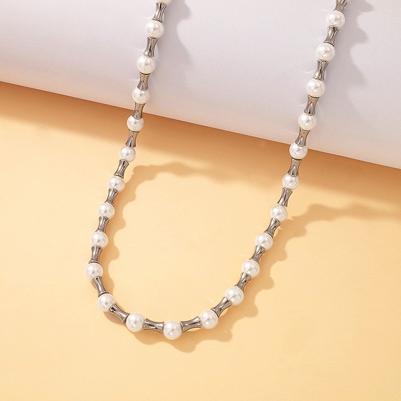 Set plateado Collar y Argollas perlita cantidad